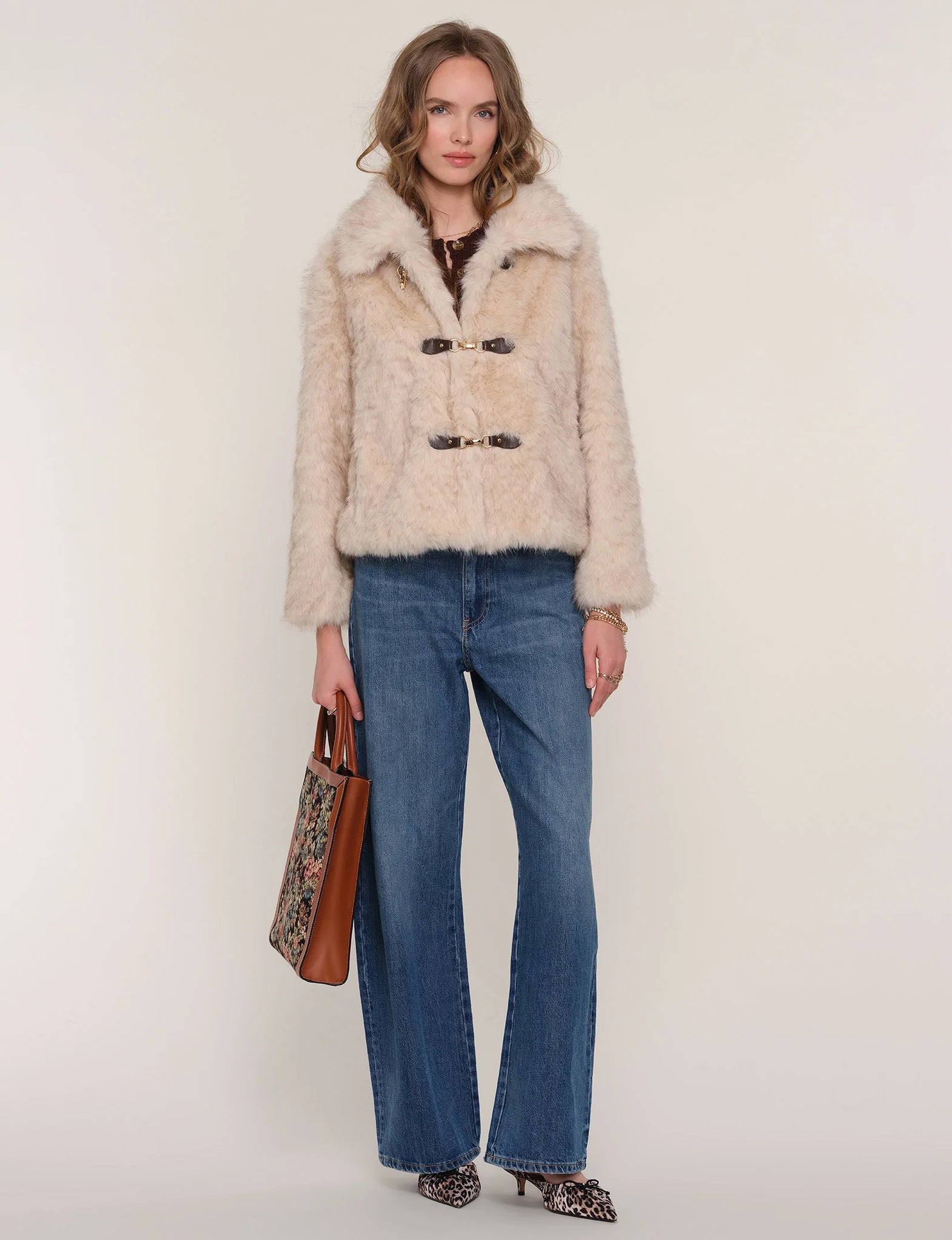 The Elsbeth Jacket is made from a super soft, faux fur. It has a cool, relaxed fit, side pockets and novelty hook closure at front. This jacket can be dressed up or dressed down, making it your most worn item of the season.