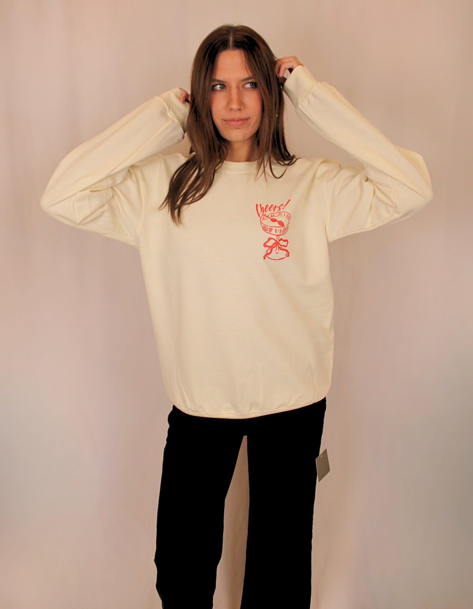 Celebrate the season with a little holiday spirit — literally. Our off-white crewneck sweatshirt brings cozy comfort and a cheeky twist to your festive wardrobe.