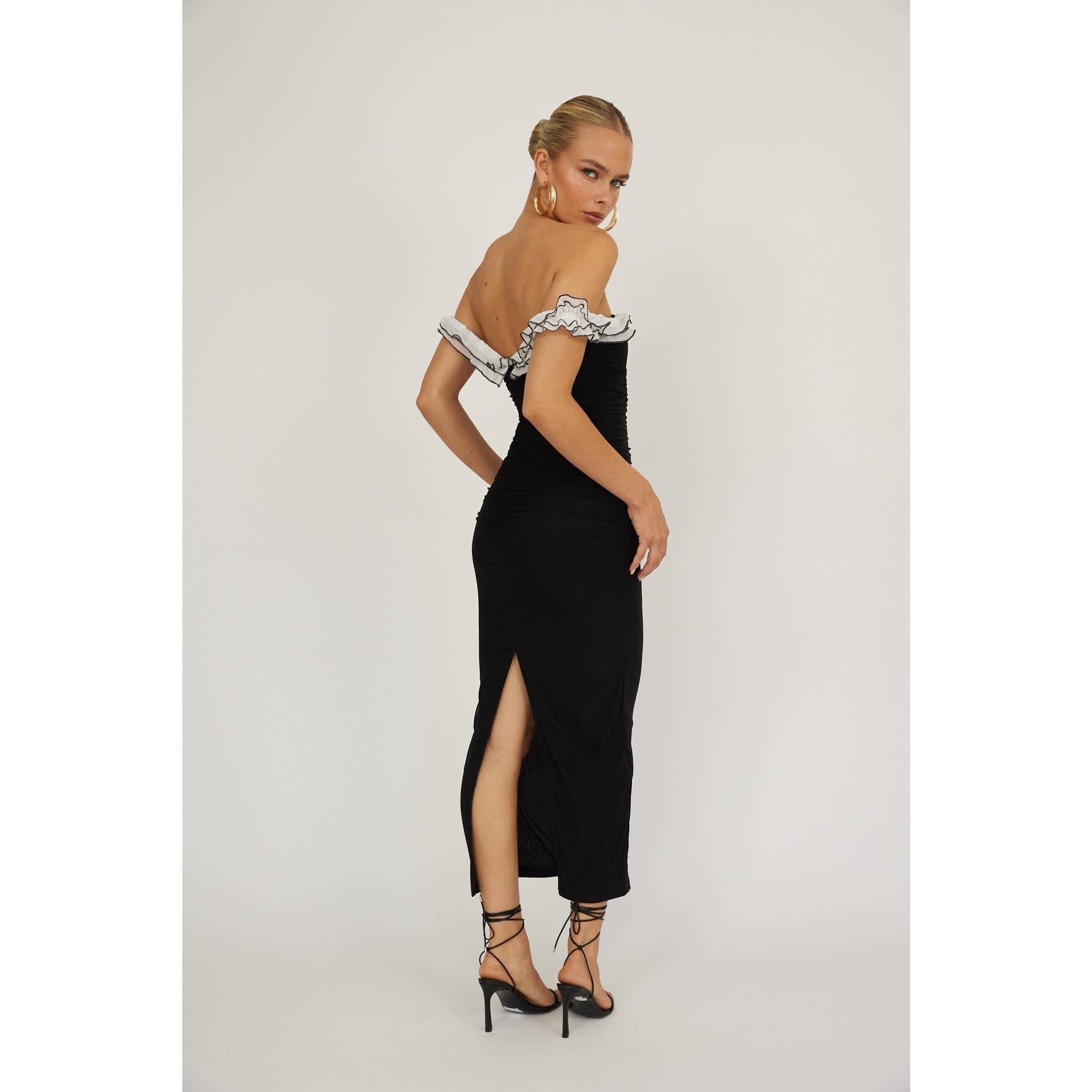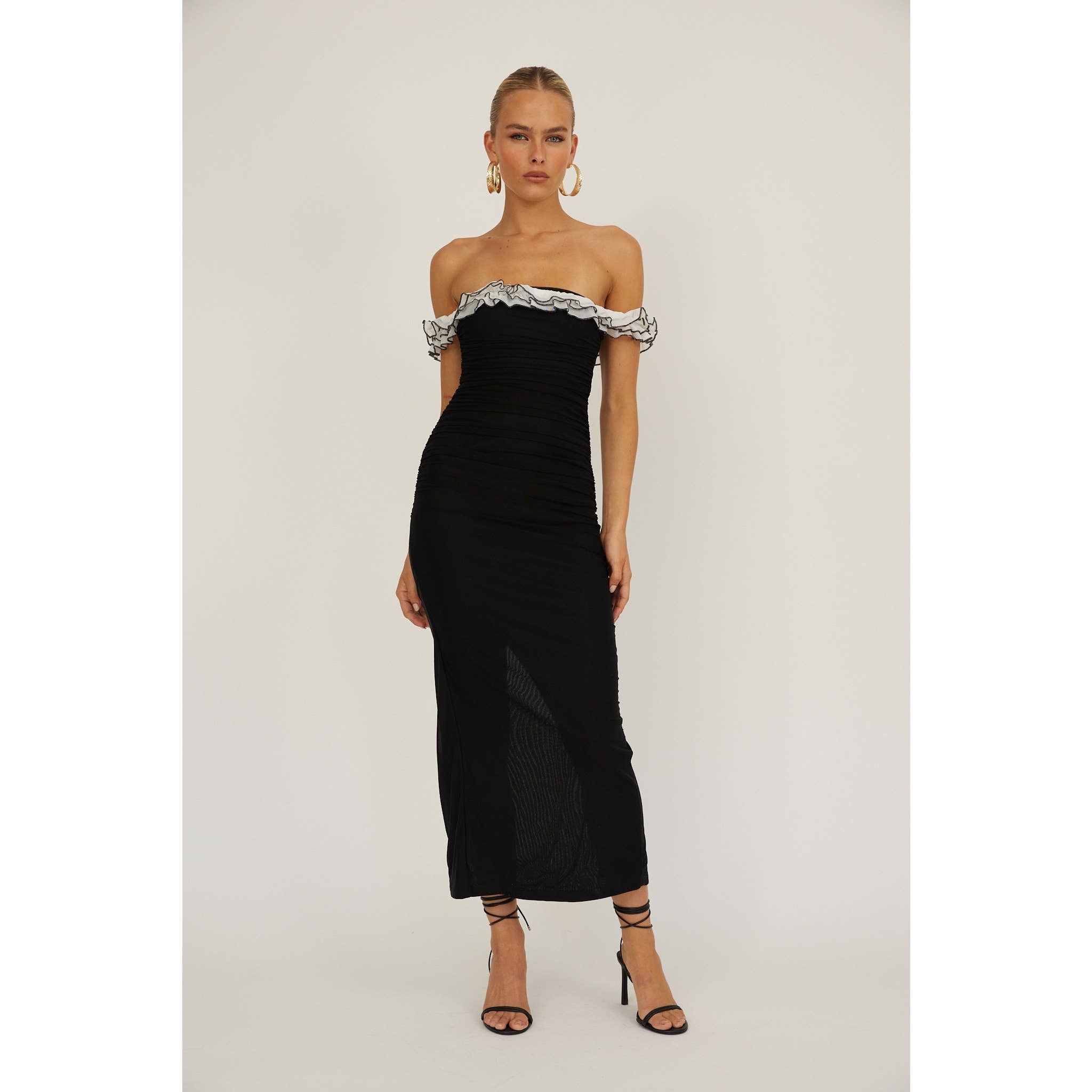 A romantic silhouette made to float with every step. The Celestia features an off-the-shoulder neckline, airy mesh layering, and a sweeping maxi length that moves like a dream. Soft, lightweight, and effortlessly feminine—perfect for weddings, soirées, and any moment you want to feel ethereal.