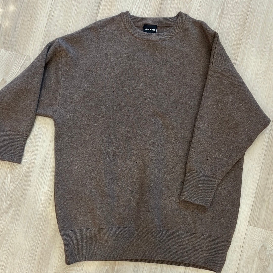 Oversized Wool round neck sweater in color cocoa