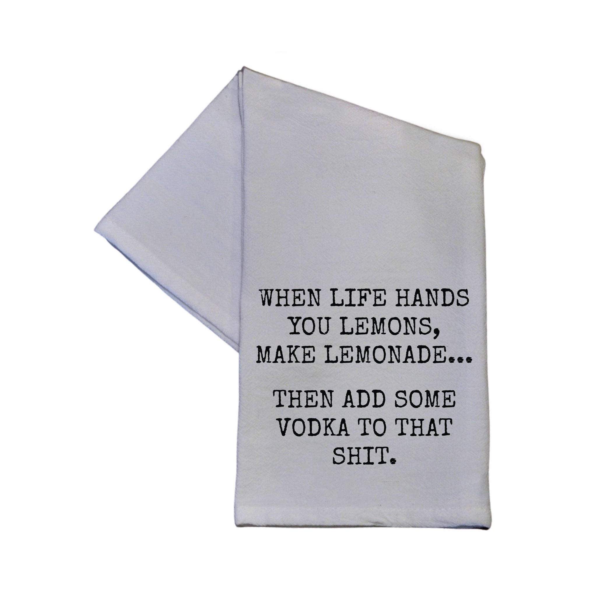 Our 100% crinkled cotton flour sack towels. We screen print our towels with Driftless Studios designs using non-toxic black ink. Unfolded size: 24"x 16"